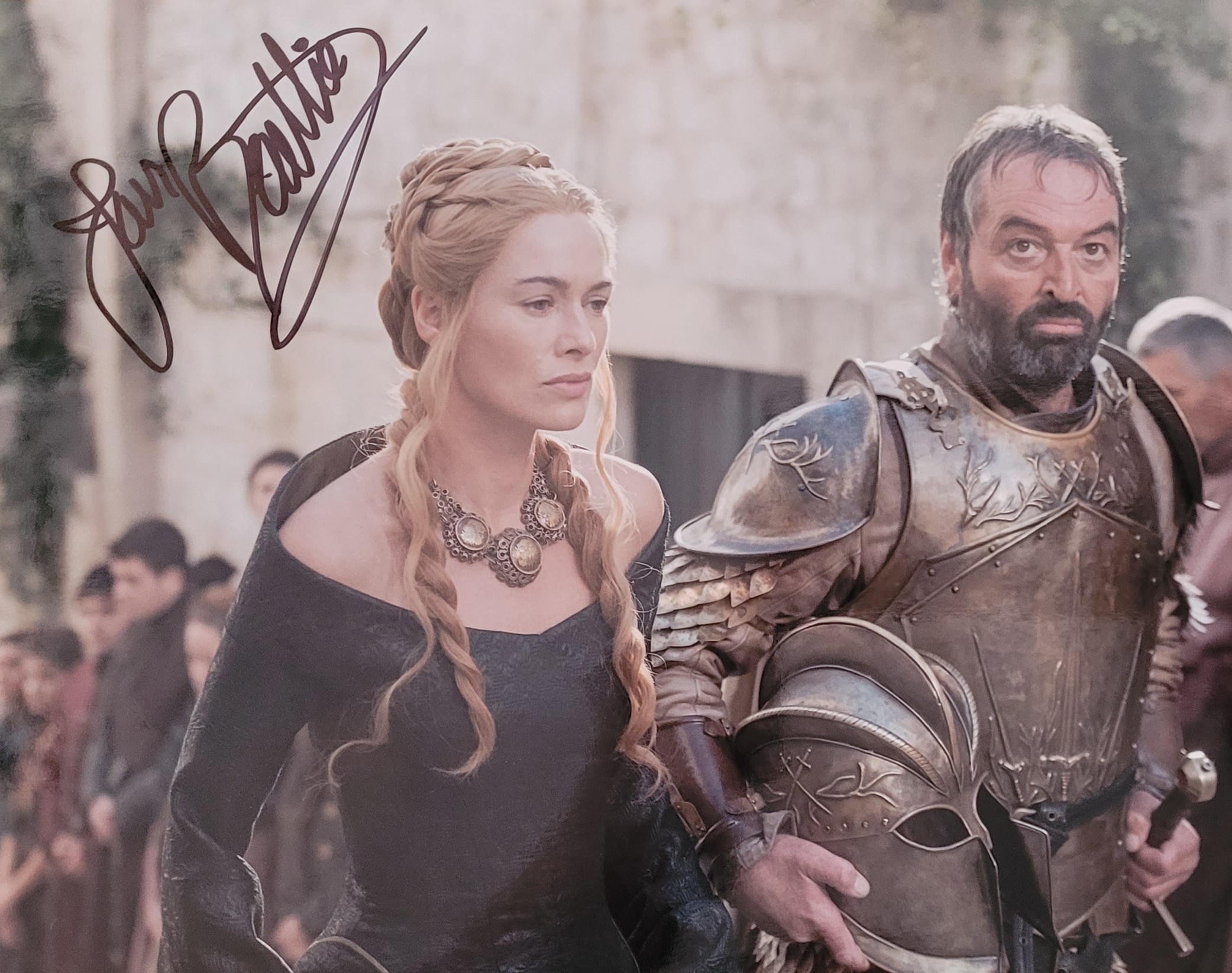 This autographed photo features Ian Beattie as Ser Meryn Trant, a knight of the Kingsguard in HBO’s Game of Thrones. Known for his unwavering loyalty to House Lannister and his brutal, sadistic nature, Ser Meryn became one of the show’s most despised characters—making his dramatic end at the hands of Arya Stark one of the series’ most unforgettable moments. Beattie’s chilling performance across five seasons helped define the darker side of Westeros.