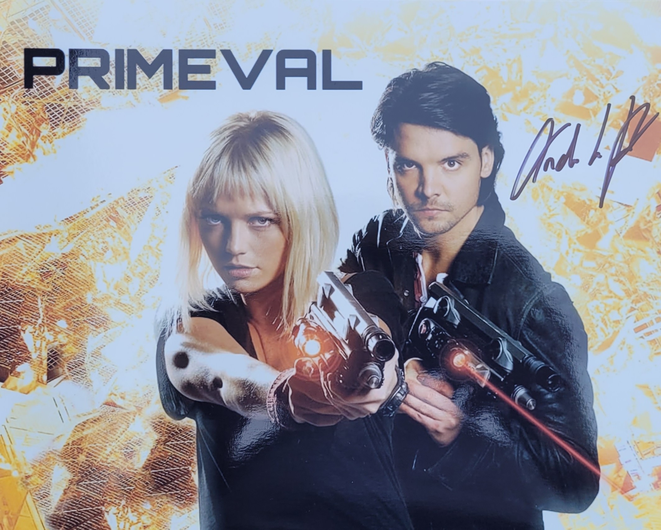 Signed photo of Andrew-Lee Potts as Connor Temple in Primeval. Add a prehistoric twist to your collection—because nothing says “I love sci-fi” like a guy who thinks chasing raptors is a reasonable career move.