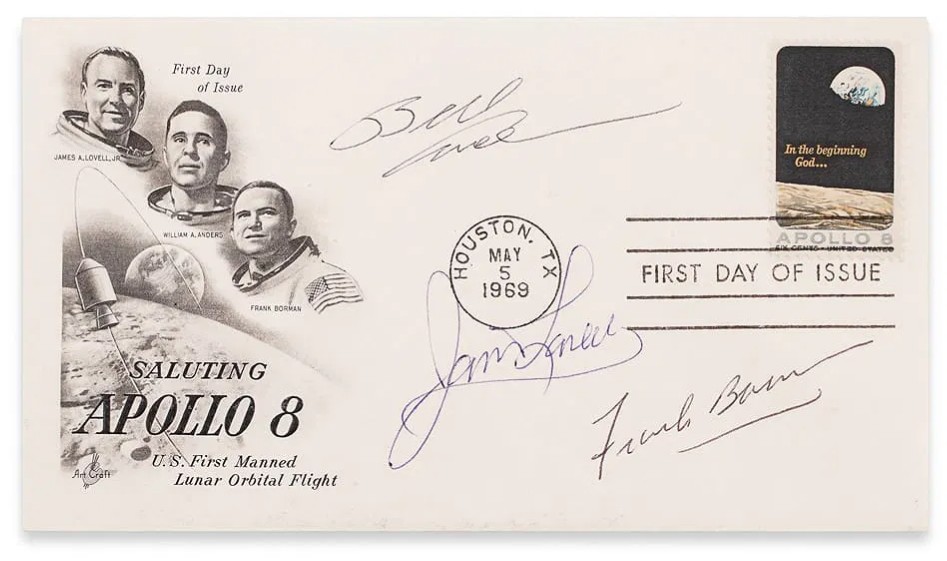 Apollo 8 Crew (Frank Borman, James Lovell & Bill Anders) – signed Apollo 8 FDC (First Day Cover) with COA