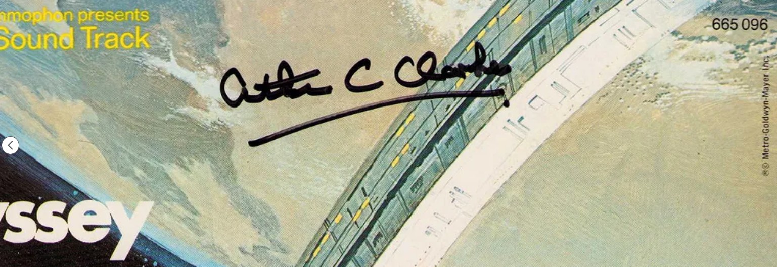 Signed soundtrack LP of 2001: A Space Odyssey by Arthur C. Clarke, proof that even deep space sounds better with an autograph. LP included.