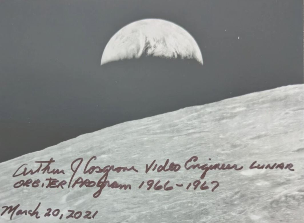 Capture a moment of photographic history with this signed 4″ x 5.5″ photo signed by Arthur Cosgrove, a Kodak engineer, showing taken with the company’s iconic space camera model. This unique piece highlights the technical minds behind Kodak’s innovations in imaging technology. A great addition for collectors of photography memorabilia, vintage camera enthusiasts, or those interested in engineering history.