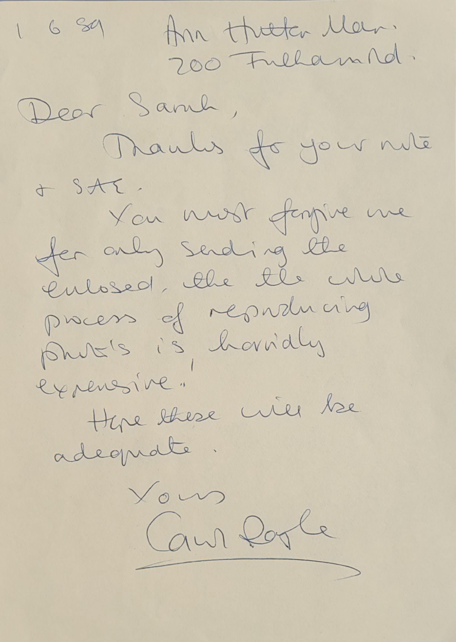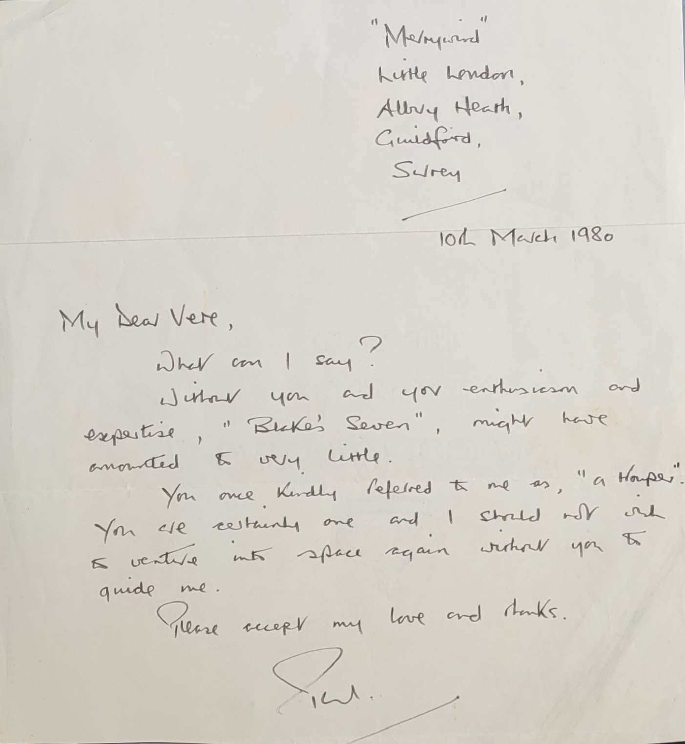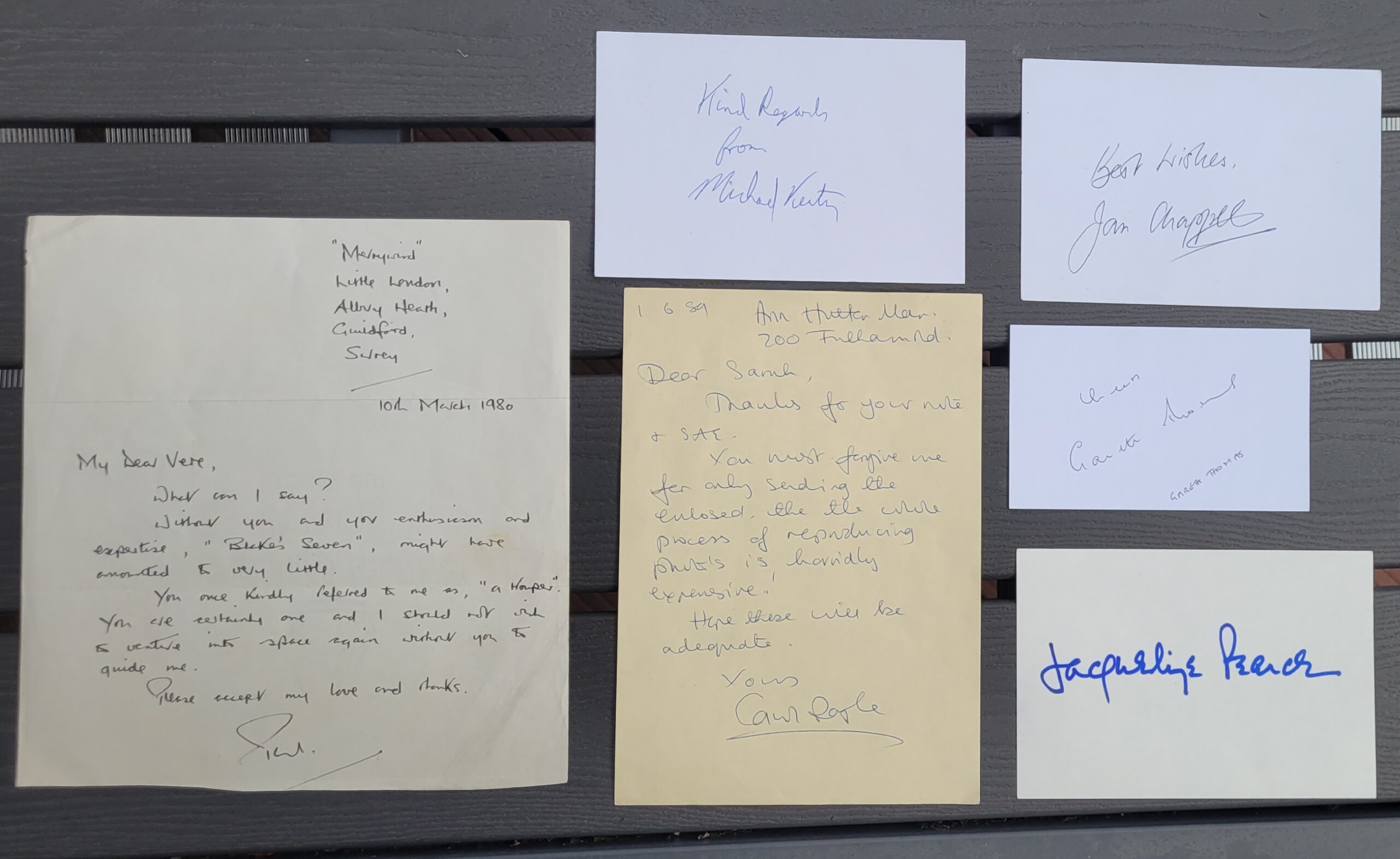 Blake’s 7 – Set of 4 Signed Paper Slips and 2 signed letters by the main Cast Members – with COA