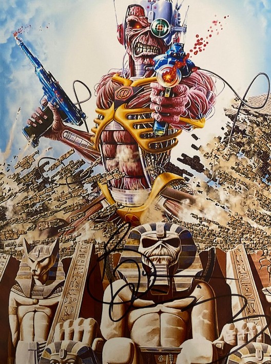 As frontman of Iron Maiden, Bruce Dickinson helped define the genre with his powerful vocals and electrifying performances. This signed photo reflects the energy and influence that made the band one of the most celebrated names in metal.