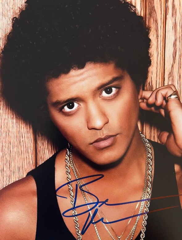 Signed photo of Bruno Mars – give your collection some serious groove with this 8×10 inch photo of the pop icon who brought us hits that never stop playing.