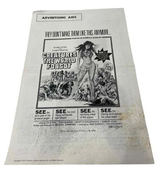 Creatures the World Forgot (1971) – original press book 11″x17″