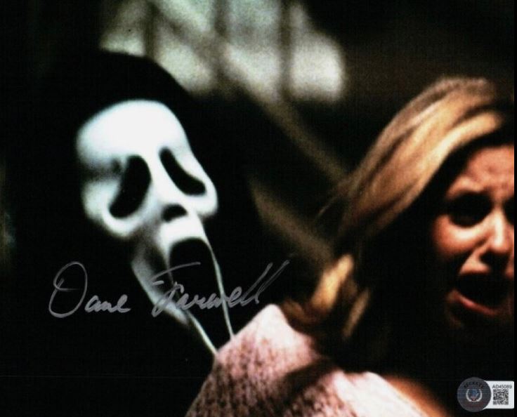 This autographed photo features Dane Farwell, the stuntman who helped define the physical presence of Ghostface, the iconic masked killer from the Scream franchise. Farwell donned the costume in Scream (1996), Scream 2 (1997), and Scream 4 (2011), bringing precision, menace, and unforgettable movement to the role that terrified audiences worldwide.