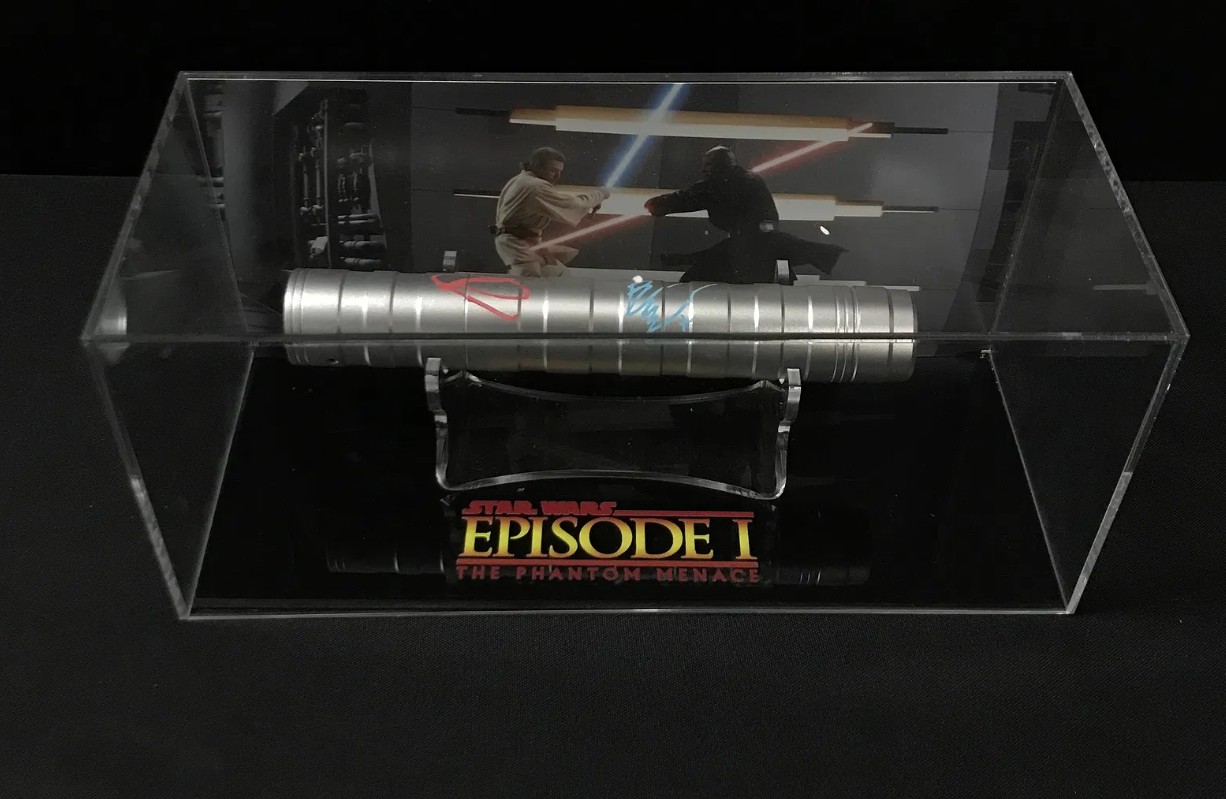Ewan McGregor and Ray Park as Obi-Wan Kenobi and Darth Maul in Star Wars – DUAL signed lightsaber presentation piece with COA