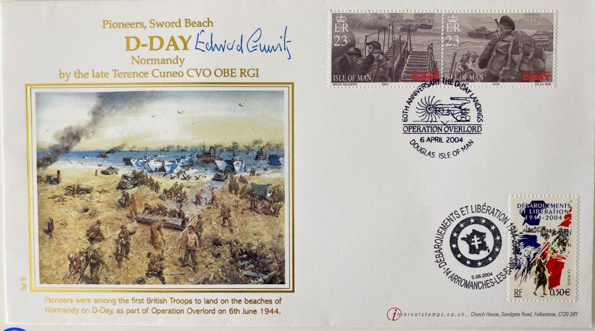 FDC (First Day Cover) Signed by Edward Gueritz Operation Overlord (April 5, 2004) and Second Stamp (June 5, 2004) with COA