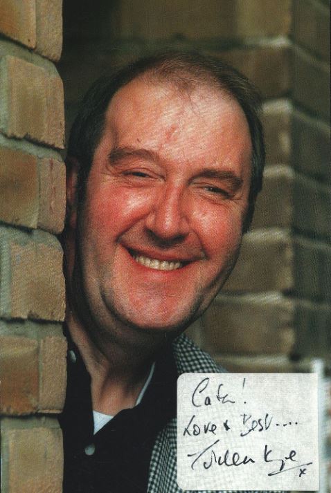 This autographed paper slip on a photo features Gorden Kaye in his iconic role as René Artois, the womanizing café owner caught in the chaos of wartime France in the beloved British sitcom ‘Allo ‘Allo! (1982–1992). With his impeccable timing, expressive delivery, and unforgettable catchphrases, Kaye brought René to life as the reluctant hero juggling resistance fighters, German officers, and romantic entanglements—all while trying to keep his café running.