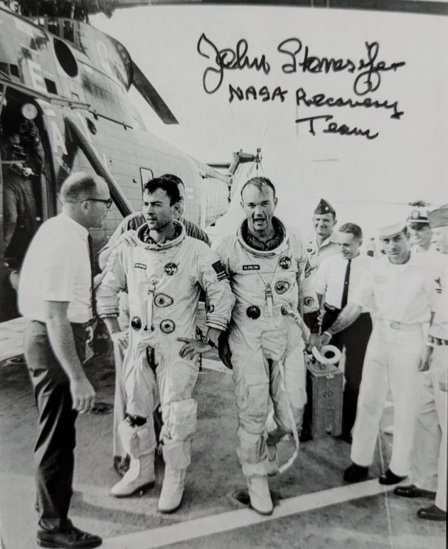 Recovery photo signed by John Stonesifer – because when your job is to catch falling heroes from space, your autograph deserves a place in every collection.