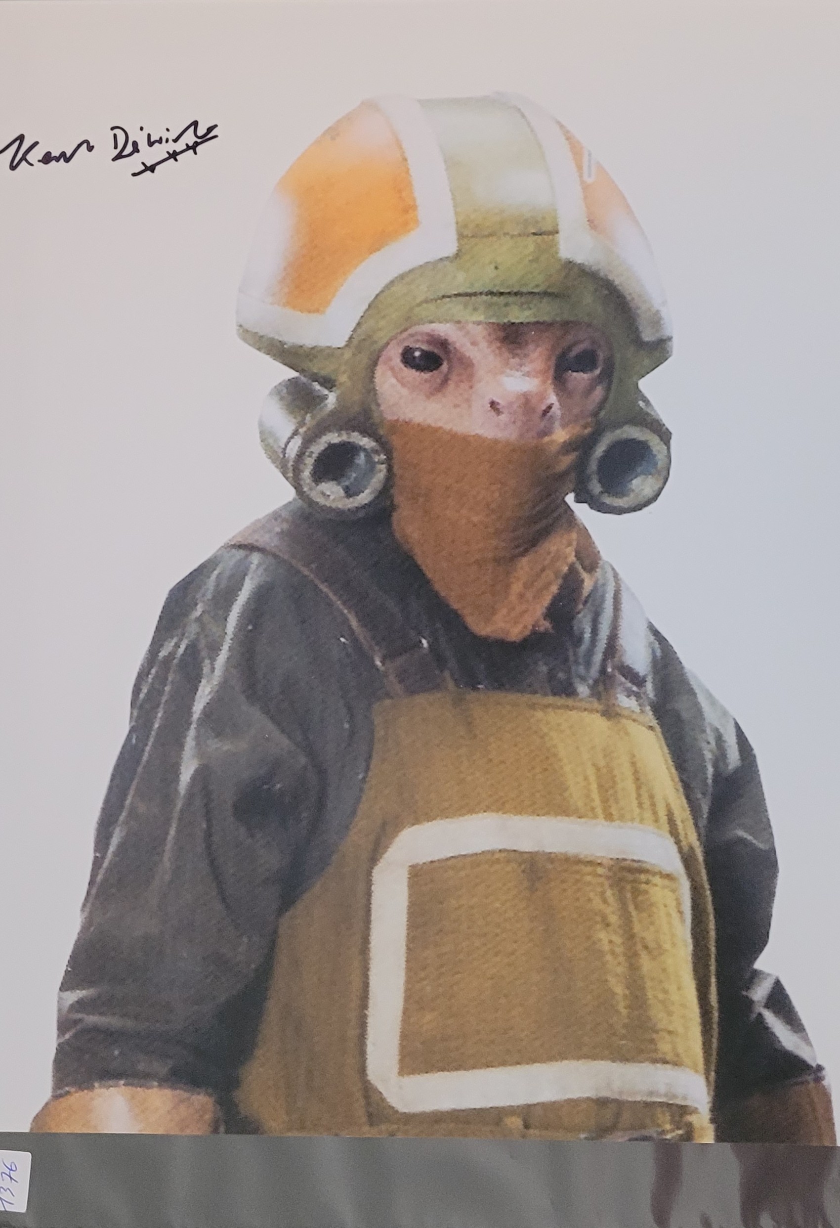 This 8″ x 10″ autographed photo features Keith De Winter as Goss Toowers, a member of the Resistance’s ground crew in Star Wars: The Force Awakens. Though a background character, Goss Toowers became a fan-favorite for his unique alien design and presence in the bustling hangars of the Resistance base.