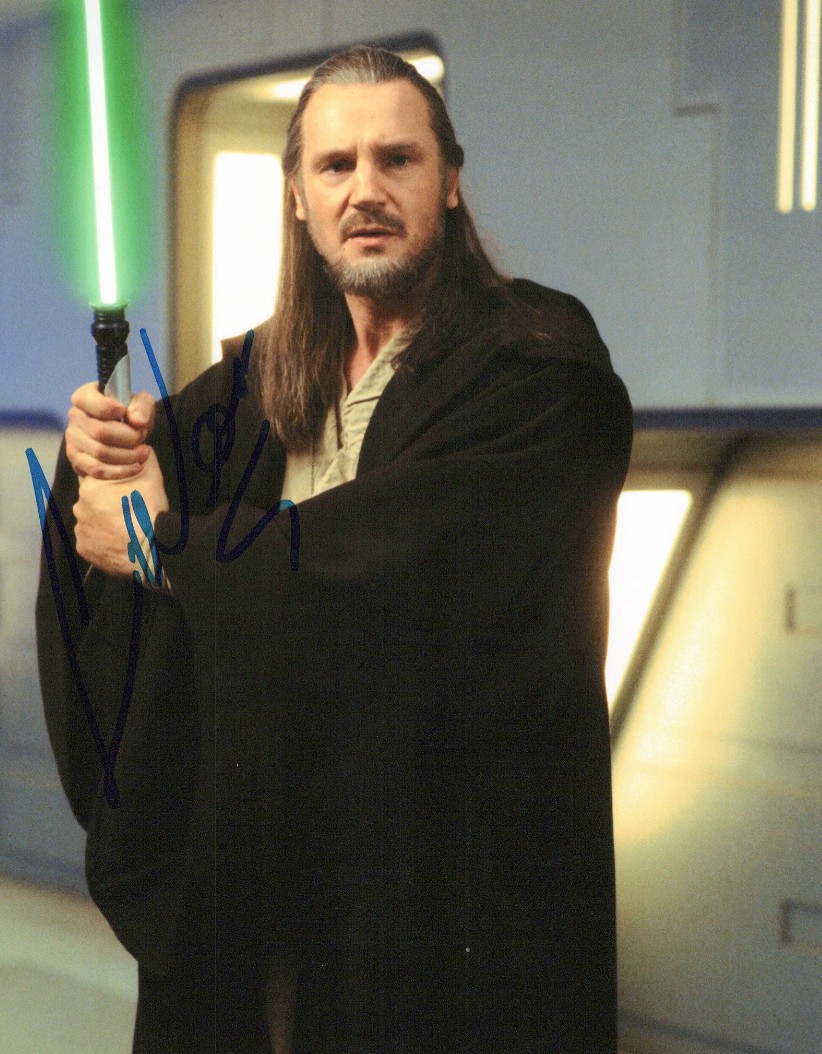 Liam Neeson as Qui‑Gon Jinn in Star Wars: The Phantom Menace – signed 10″x8″ photo with COA