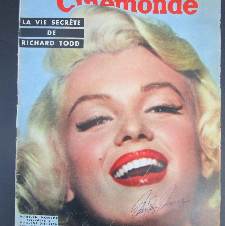 Own a rare and radiant piece of Hollywood history with this authentic signed Cinémonde magazine cover featuring the legendary Marilyn Monroe. This vintage French cinema publication captures Monroe in one of her most iconic poses—elegant, luminous, and unmistakably glamorous.