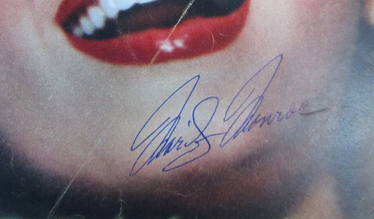 Her signature, boldly placed on the cover, stands out as a testament to her enduring legacy. With authentic Monroe autographs becoming increasingly scarce, this signed Cinémonde cover is a true collector’s gem—especially for fans of classic Hollywood and vintage European film culture.