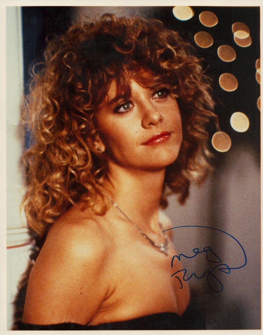 This autographed photo features Meg Ryan, one of the most beloved actresses of the late 20th century, celebrated for her charm, wit, and unforgettable roles in romantic comedies. Her breakout performance in When Harry Met Sally… (1989) made her a household name, and she continued to define the genre with classics like Sleepless in Seattle (1993), You’ve Got Mail (1998), and French Kiss (1995). Ryan’s relatable warmth and quirky charisma helped shape a generation of romantic storytelling.