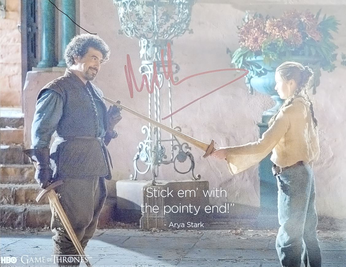 Looking to add a touch of swordplay and mystery to your collection? This signed photo is a tribute to Syrio Forel’s lasting influence and the unforgettable lessons he passed on to Arya Stark.