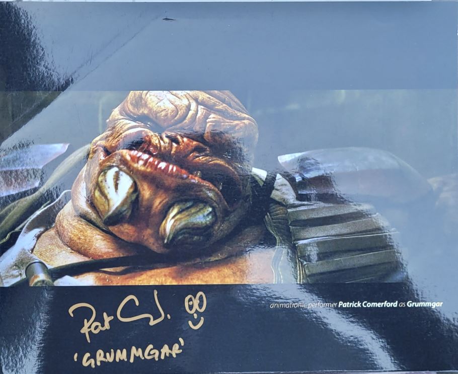 Patrick Comerford’s performance as the animatronic performer behind Grummgar showcases the incredible behind-the-scenes artistry that makes the Star Wars universe feel so real. This signed photo is a tribute to the unsung heroes who bring the galaxy’s most unforgettable creatures to life.