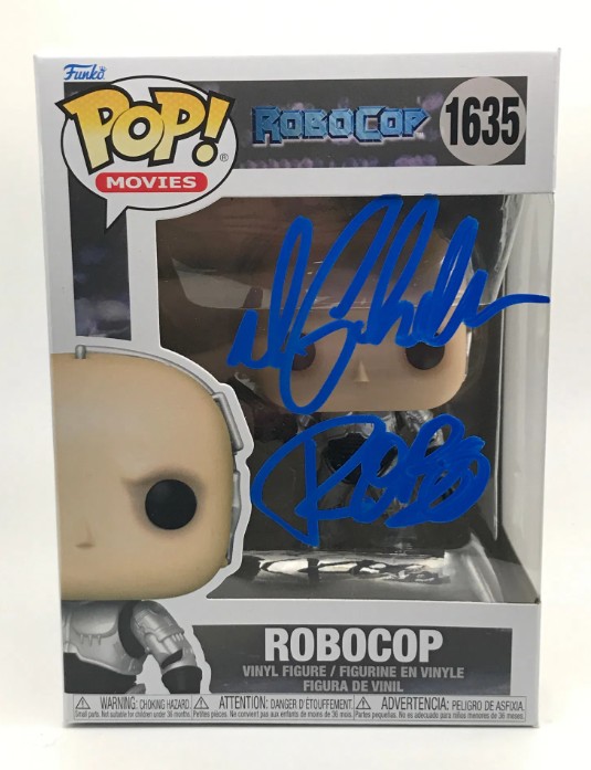 Signed Funko Pop of Peter Weller as RoboCop in RoboCop adding a dose of cybernetic justice to your collection