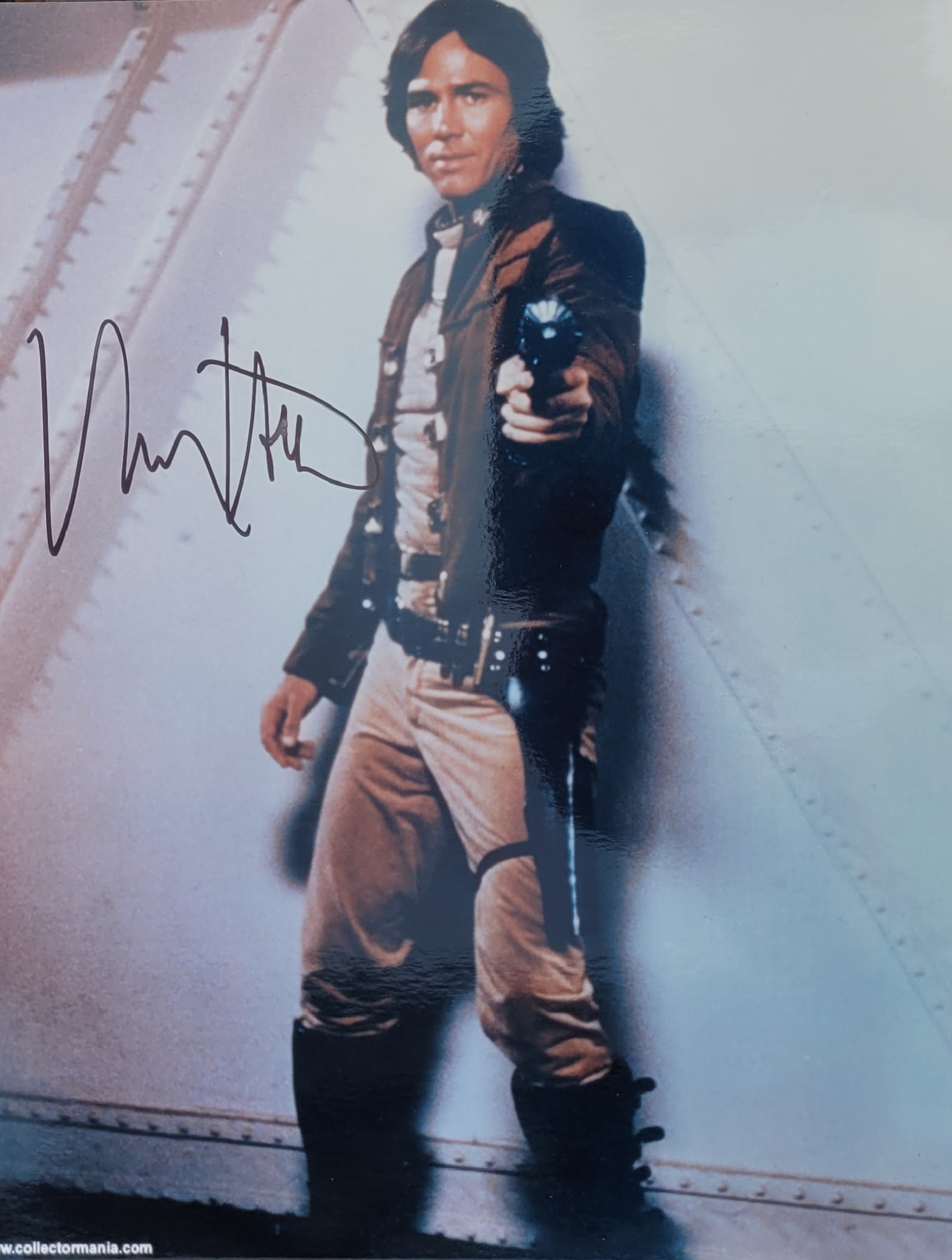 Signed photo of Richard Hatch as Captain Apollo — because every collection needs a hero who flies Vipers and breaks hearts.