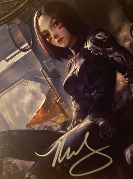 This autographed photo features Rosa Salazar as Alita, the fierce and compassionate cyborg heroine in Alita: Battle Angel (2019), directed by Robert Rodriguez and produced by James Cameron. Set in a post-apocalyptic future, the film follows Alita’s journey of self-discovery as she awakens in a new body with no memory of her past, only to uncover extraordinary combat abilities and a mysterious origin. Salazar’s performance—brought to life through groundbreaking performance-capture technology—infused the character with heart, strength, and vulnerability, making Alita a modern sci-fi icon.