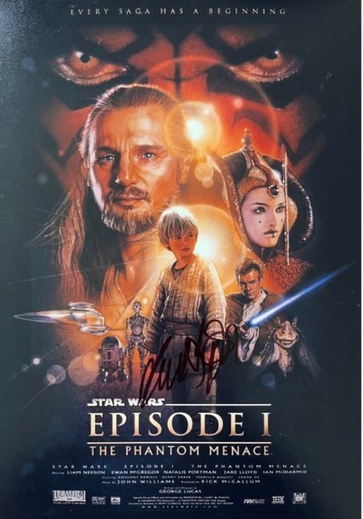 This poster features official artwork from The Phantom Menace and is hand-signed by Jackson. It comes with a Certificate of Authenticity, making it a standout piece for Star Wars fans and autograph collectors alike.