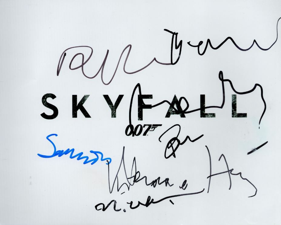 Skyfall logo: signed 10″x8″ photo with 7 cast member’s autographs