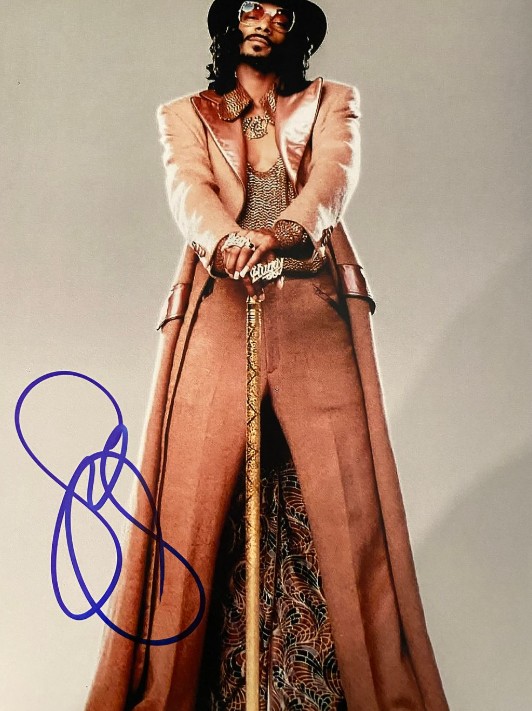 Bring hip-hop royalty to your collection with this authentic signed 10″ x 8″ photo of Snoop Dogg, complete with his signature style and a cane in front of him for that extra touch of cool. Known for his smooth flow, chart-topping hits, and larger-than-life persona, Snoop Dogg remains one of the most influential figures in music and pop culture.