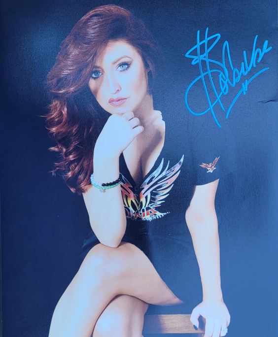 Add a touch of wrestling glamour to your collection with this authentic signed 10″ x 8″ photo of SoCal Val, known for her dynamic presence in Total Nonstop Action Wrestling (TNA). With her signature red hair and commanding ringside persona, Val became a fan favorite as a valet, ring announcer, and backstage interviewer.