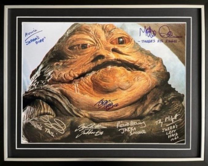 Add this signed photo to your collection and celebrate the unsung heroes behind the slug-like crime lord of Tatooine.