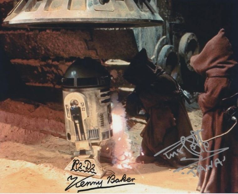 Star Wars IV: Kenny Baker (R2-D2) & Rusty Goffe (Jawa) double signed photo 10″ x 8″ – with COA