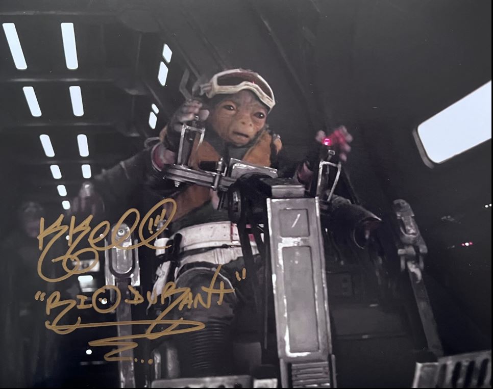 Add a touch of Star Wars magic to your collection with this signed photo of Katty Cartwheel as the brave Rio Durant in “Star Wars: Solo”. This autographed photo is a nice collectible that celebrates this epic saga and the enduring appeal of the Galactic Empire’s struggle. Perfect for any Star Wars enthusiast, this piece honors the legacy of the franchise and the actors who brought its characters to life.