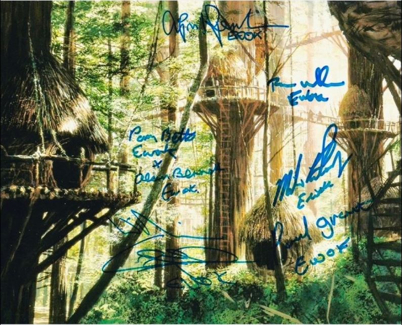 Star Wars VI: Return of the Jedi : 10″ x 8″ photo of the Ewok village signed by 7 Ewok performers (25cm x 20cm)