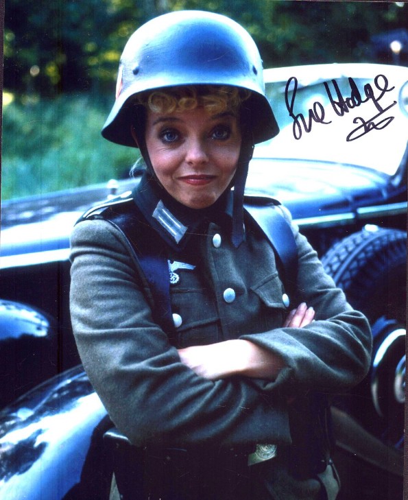 Signed photo of Sue Hodge. Add it to your collection today—because nothing says “Vive la Résistance!” like a waitress with a grenade in her handbag and a questionable accent.