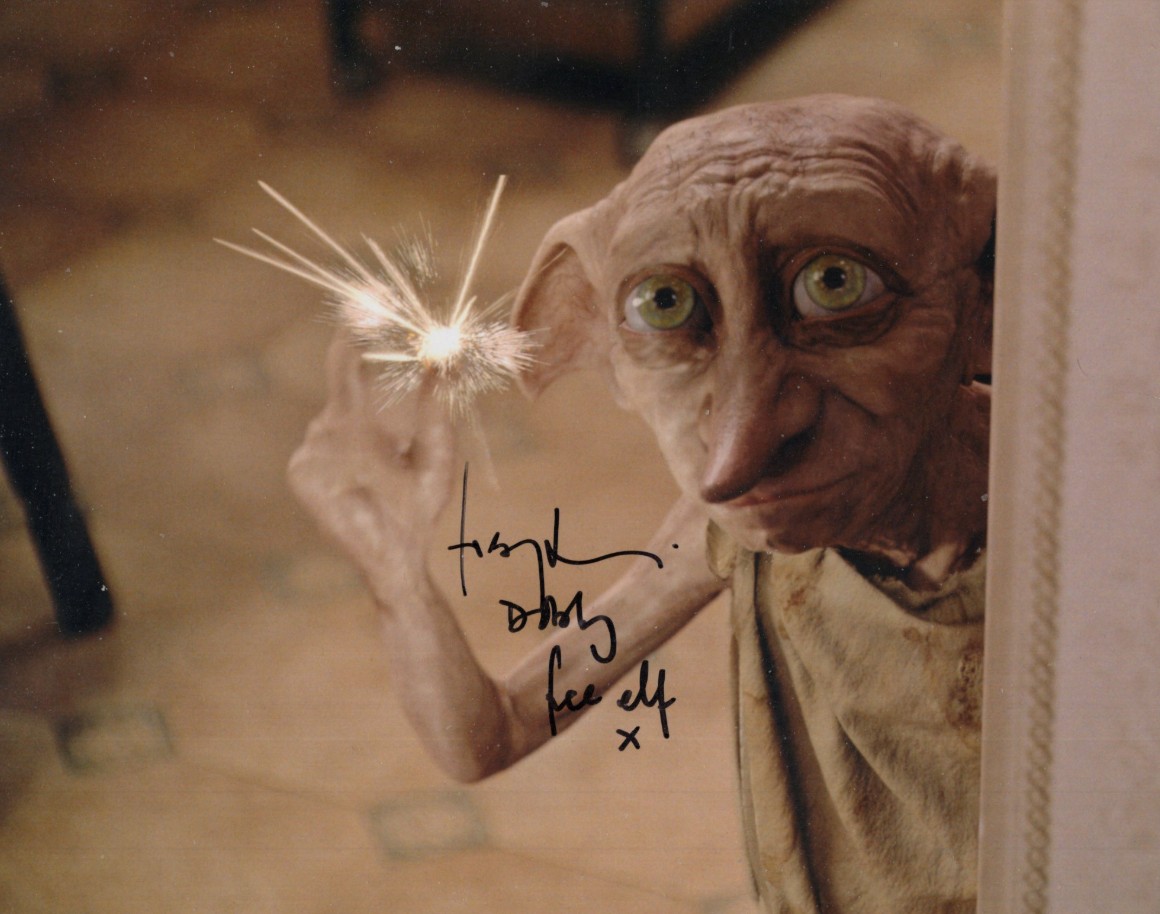 Dobby is one of the most iconic characters in the Harry Potter universe, remembered for loyalty and courage. This signed photo captures the magic of the series and is a must-have for any Potterhead.