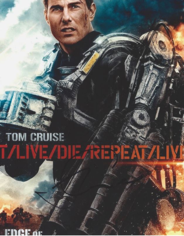 This signed photo features Tom Cruise as Major William Cage in Edge of Tomorrow, the gripping 2014 sci-fi action film where time, war, and survival collide. Cruise delivers a compelling performance as a reluctant soldier caught in a time loop, forced to relive the same deadly battle until he uncovers the key to defeating an alien invasion.